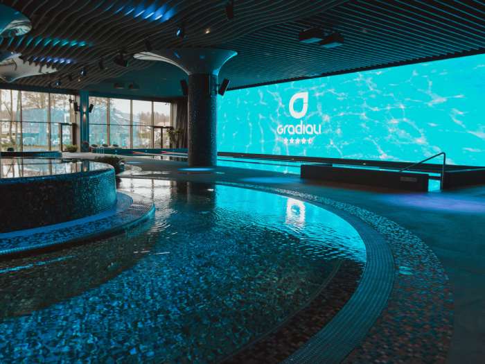 Jūsu rīcībā būs plašs un lieliski aprīkots pirts un baseina komplekss. Baudīsiet karsēšanos turku tvaika pirtī. Pirts rituāls ne tikai atslābina un noņem spriedzi, šai procedūrai piemīt arī ārstnieciskas īpašības. Svīšanas laikā caur ādu tiek izvadīti organismā uzkrājušies toksīni un citas kaitīgas vielas, kas negatīvi ietekmē veselību un dzīves kvalitāti. Pēc karsēšanās pirtīs varēsiet atveldzēties baseinā, izbaudīt relaksāciju džakuzī un cirkulārajā dušā. Ķermeņa mundrumam piedāvājam izmantot trenažieru zāles sniegtās iespējas.