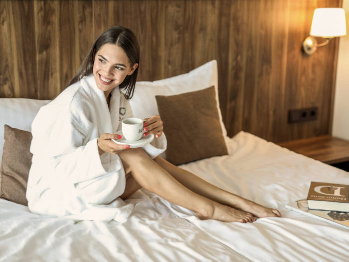 - Divvietīgais Superior numurs (22 m²) ar visām nepieciešamajām ērtībām kvalitatīvai atpūtai: ērta gulta labam nakts miegam, bezmaksas internets, platekrāna TV, telefons, seifs, drēbju skapis, rakstāmgalds un ledusskapis. Jūsu rīcībā būs vannasistaba ar tualeti un dušu, halāti, dvieļi, fēns un nepieciešamākie higiēnas piederumi.