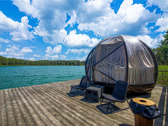 Jūs gaida unikāla pieredze, atpūšoties kupolmājā "Oasis Dome" uz privātas laipas, prom no citiem atpūtniekiem. Šeit varēsiet iekārtoties karaliskā gultā, no kuras ērti caur caurspīdīgu jumtu lūkoties zvaigžņu nosētajās debesīs. Jūsu ērtībām ir arī terase ar āra mēbelēm, āra duša ar tualeti, kas paredzēta Jūsu privātai lietošanai. Turklāt nav lieki jāpārdzīvo, ka vēsākā vakarā varēsiet nosalt, jo kupolmāja ir aprīkota ar autonomo apkuri, tāpēc romantiski un omulīgi vakari Jums ir garantēti!