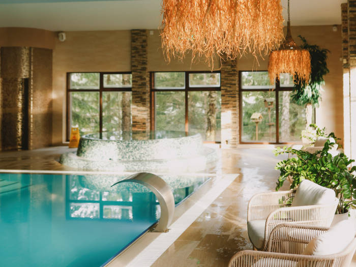 Omulīgajā SPA zonā Jūs sagaida mierpilni mirkļi. Izbaudiet lieliskas peldes 12 m garajā un 6 m platajā baseinā ar kaskādi, spēcīgu vertikālo straumi un geizeru. Laiski atlaisties varēsiet burbuļojošā džakuzi ar divu veidu strūklām.