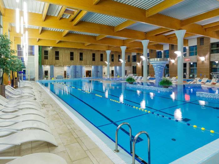 Jūs gaida atpūta pirts un baseinu kompleksā ar 8 dažādām pirtīm (dažādu temperatūru tvaika pirtis, infrasarkano staru pirts, dažādu temperatūru un mitruma saunas, Himalaju sāls pirts, kā arī ledus istaba), 3 saldūdens un minerālūdens baseiniem (aprīkoti ar masējošām zemūdens un vertikālām strūklām) un burbuļvannām. Mazie viesi varēs izklaidēties bērnu baseinā.
