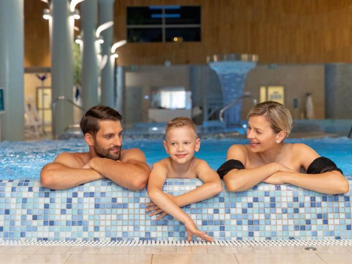 Jūs gaida atpūta pirts un baseinu kompleksā ar 8 dažādām pirtīm (dažādu temperatūru tvaika pirtis, infrasarkano staru pirts, dažādu temperatūru un mitruma saunas, Himalaju sāls pirts, kā arī ledus istaba), 3 saldūdens un minerālūdens baseiniem (aprīkoti ar masējošām zemūdens un vertikālām strūklām) un burbuļvannām. Mazie viesi varēs izklaidēties bērnu baseinā.