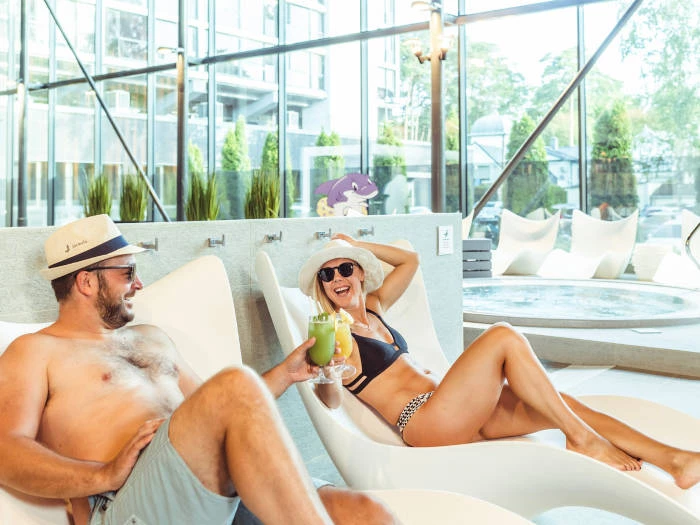 Atjaunotajā saunu un baseinu centrā "Wellness Oasis" varēsiet apmeklēt piecas dažādu veidu pirtis – romiešu pirts, somu pirts 110°C ar žadeīta akmeņiem, aromātiskā pirts, sāls pirts un somu pirts 80°C. Pēc saunu maratona varēsiet veldzēties 3 dažādu ūdens temperatūru baseinos ar kaskādēm, kā arī baudīt ūdens burbulīšu maigo masāžu džakuzi vannā!  Maziem viesiem noteikti patiks bērnu baseins ar slidkalniņu, bet sasildīties viņi varēs bērnu saunā. Bārā "Aqua" Jums ar prieku pagatavos atspirdzinošu dzērienu, ko varēsiet baudīt, neizkāpjot no baseina!