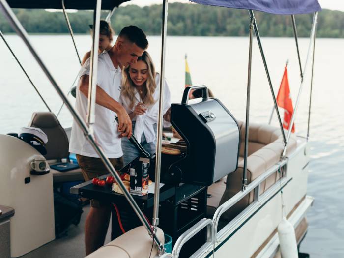 Omulīgs pikniks ar bārbekjū uz izpriecu kuģīša Traķos